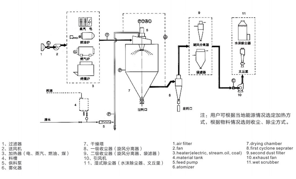 1、熱氣流與霧滴的接觸:有足夠量的熱氣流進(jìn)入噴霧干燥室時(shí),必須考慮熱氣流的方向及角度,無(wú)論是并流、逆流還是混流,確保與霧滴的充分接觸,才能進(jìn)行充分的熱交換。